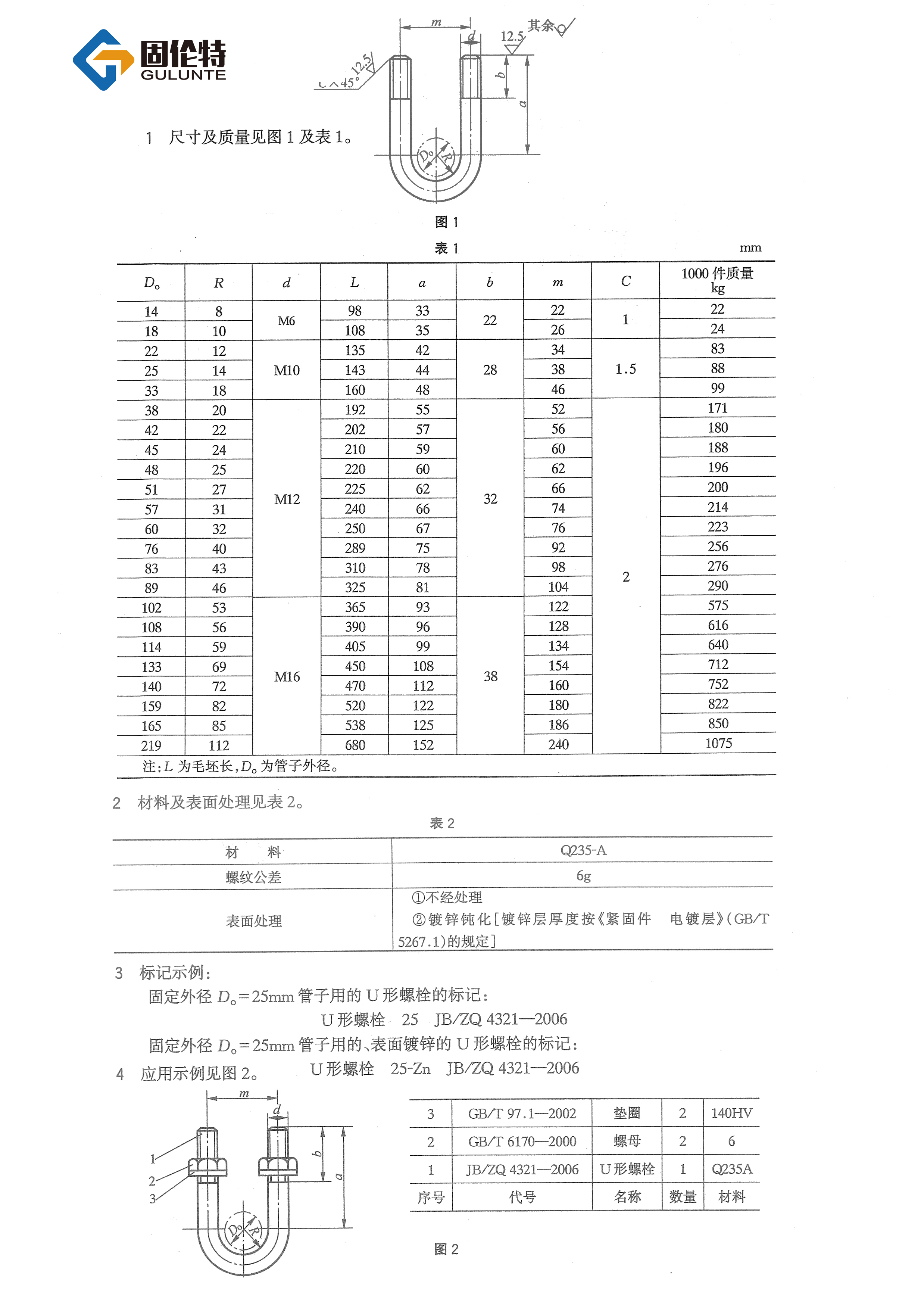 固倫特U型螺栓,即固倫特騎馬螺栓,英文名稱為U-bolt,是非標準件。形狀為u形所以也稱為固倫特u型螺絲、固倫特u型管卡、固倫特u型卡、固倫特u型絲或固倫特卡子。固倫特u型螺栓規格如下圖;